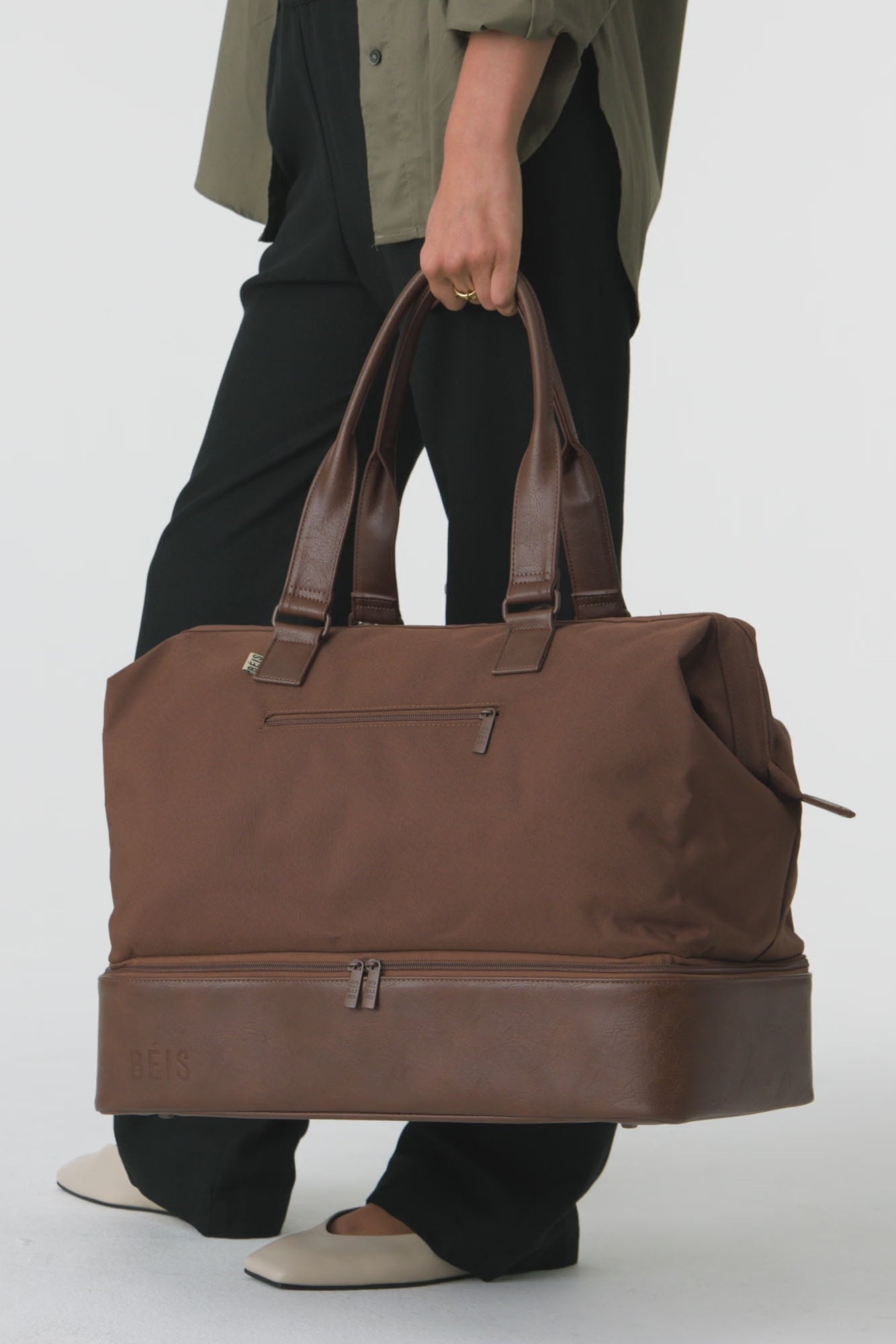 We designed this bag to take the hassle out of packing for the weekend or whichever days you’re away. Seriously, this tote’s easy-access opening makes getting everything in and out a breeze (no flashlight required). Plus, the bottom compartment is designed to keep your shoes, toiletries and travel essentials separate—you can even stash a hair dryer in there. Bonus points: there’s a zipper-pocket on the back that becomes a trolley sleeve so it fits over your luggage handle. Say Hello to your new favorite Carry-On Travel Bag.
